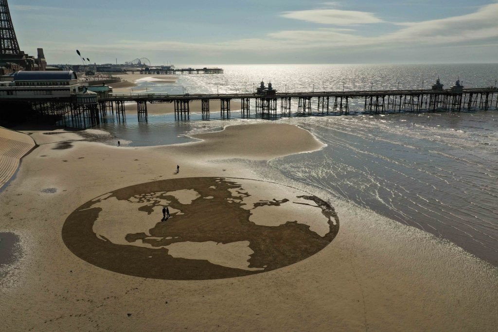 The educational and interactive exhibition, ‘Four Corners of the World’, which will open at Easter this year, has been designed to highlight the importance of reefs and wrecks in creating and sustaining rich marine eco-systems. In recent years, people have become more aware of the importance of protecting the diversity of life in the seas and how human beings and our lifestyles affect the health of our oceans. Sometimes a big message like this can be conveyed far more effectively with a simple image. However, at 48m and including many of the world’s seas, continents, and countless islands, our sand drawing of the earth wasn’t exactly simple for Jamie Wardley, Rich Spence, Mark Wilson and Liz Warrington to construct, but the finished beach art made a great impact, footage of the globe even made it to local and national news, spreading the message of the exhibition.