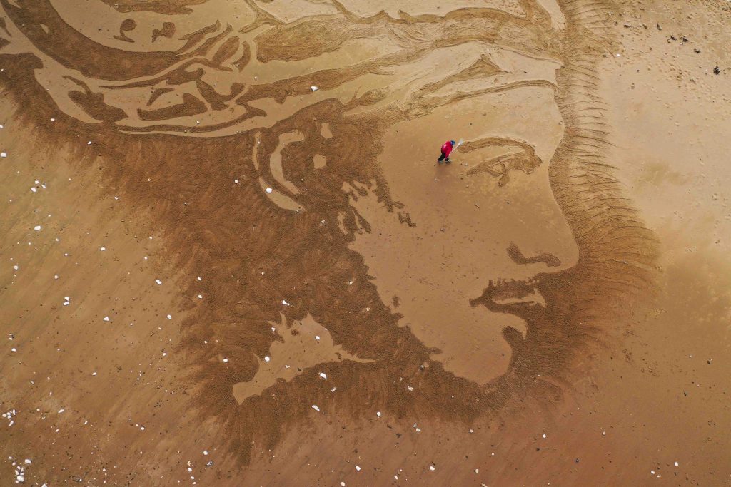 With a song in their step, the Sand In Your Eye team of sand artists made their way down from a wild and windy Yorkshire to work their sand drawing magic.